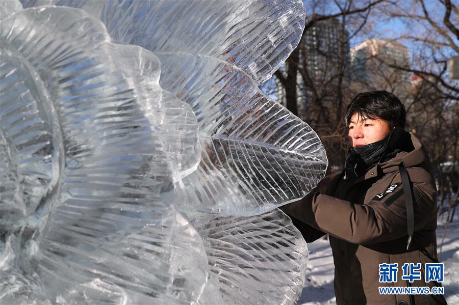 12月27日,選手在比賽中完善冰雕作品。 當日,第十六屆黑龍江省大學生冰雕藝術設計創(chuàng)作大賽在哈爾濱兆麟公園落下帷幕,全省高校共有99支隊伍參賽。 新華社記者曹霽陽攝