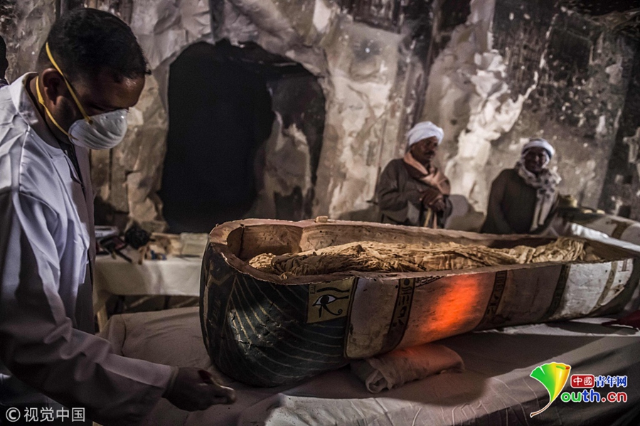 當(dāng)?shù)貢r(shí)間2018年11月24日,埃及盧克索,考古學(xué)家在當(dāng)?shù)匕l(fā)掘出一處墓穴,在其中發(fā)現(xiàn)石棺、木乃伊等文物,時(shí)間可追溯至公元前4-7世紀(jì)。