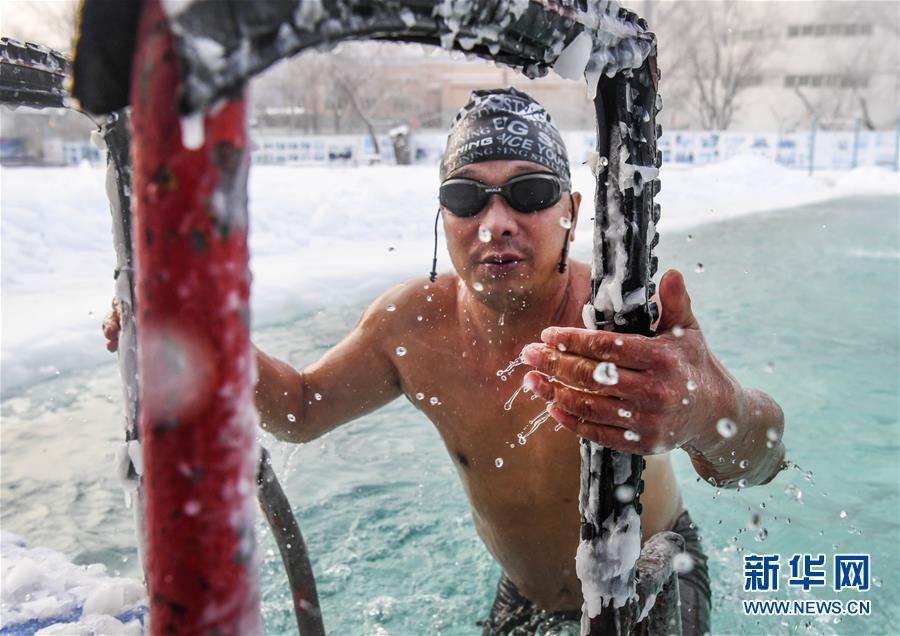 當(dāng)日,新疆烏魯木齊戶外氣溫接近零下20攝氏度,許多冬泳愛(ài)好者不懼嚴(yán)寒,來(lái)到烏魯木齊紅山游泳中心戶外泳池進(jìn)行冬泳運(yùn)動(dòng),鍛煉身體,磨練意志。