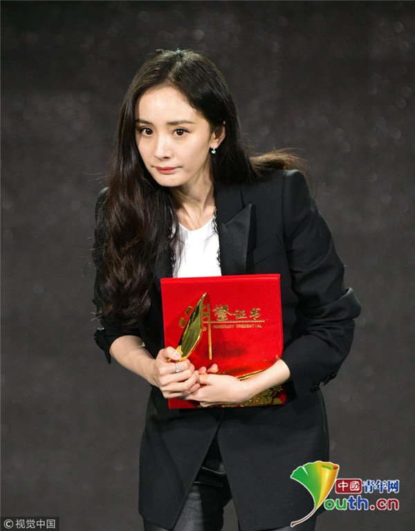 2018年12月28日,第五屆中國好演員表彰盛典頒獎禮。楊冪西裝現(xiàn)身大紅唇配波浪卷精致干練,臺下端坐用厚衣服蓋腿,與工作人員悄悄交談端正舉著手顯呆萌。當(dāng)晚楊冪榮獲“綠寶石女演員”獎,上臺發(fā)表感言帥氣女強人范氣場十足。