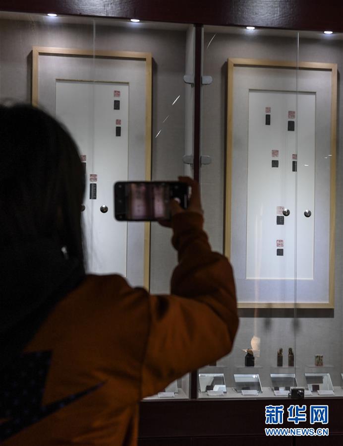12月29日,觀眾用手機拍攝展出的金石篆刻印章。 當日,“中國竹扇之鄉(xiāng)”——浙江省安吉縣鄣吳鎮(zhèn)舉辦傳統(tǒng)文化迎新年活動。舉辦包括扇文化博覽會、扇面藝術展、制扇工藝展示及金石、拓印文化展示等活動,弘揚中華優(yōu)秀傳統(tǒng)文化。 自上世紀七十年代以來,鄣吳鎮(zhèn)開始發(fā)展制扇產業(yè),現在該鎮(zhèn)有各類制扇企業(yè)80余家,制扇行業(yè)從業(yè)人員2000多人,年產值達2億多元。 新華社記者 徐昱攝