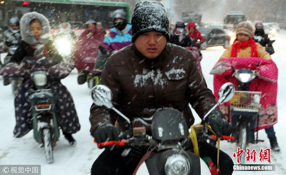 此次是石家莊入冬以來(lái)出現(xiàn)的第二次降雪天氣,對(duì)交通安全帶來(lái)影響。圖片來(lái)源:視覺中國(guó)