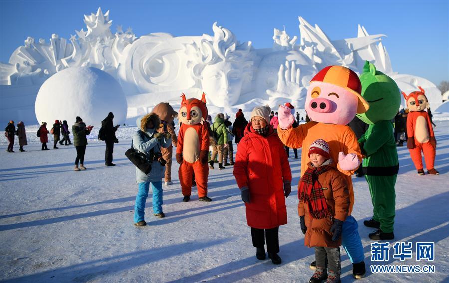 12月29日,游客在太陽島雪博會(huì)園區(qū)游玩。 當(dāng)日,第31屆哈爾濱太陽島國際雪雕藝術(shù)博覽會(huì)正式開園。本屆太陽島雪博會(huì)以“歡樂雪博會(huì)·夢(mèng)幻雪域游”為主題,占地90萬平方米,分為五大景區(qū)。 新華社記者 王建威 攝