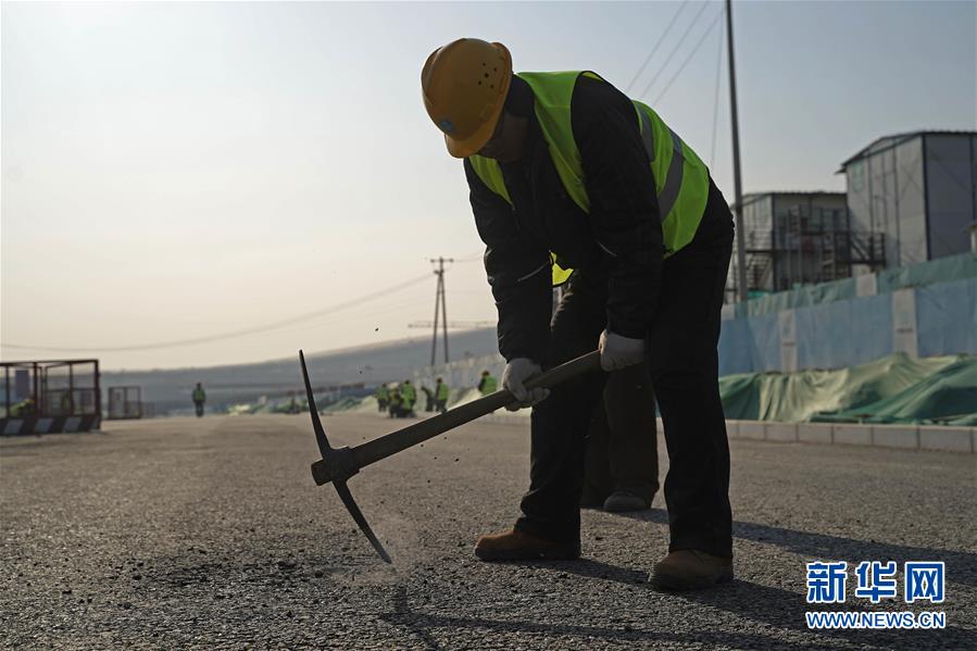 2019年1月1日,工人在北京大興國際機(jī)場(chǎng)中建三局三公司工地上剔鑿井口。 當(dāng)日是新年第一天,眾多勞動(dòng)者忙碌在工作崗位上。 新華社記者 才揚(yáng) 攝