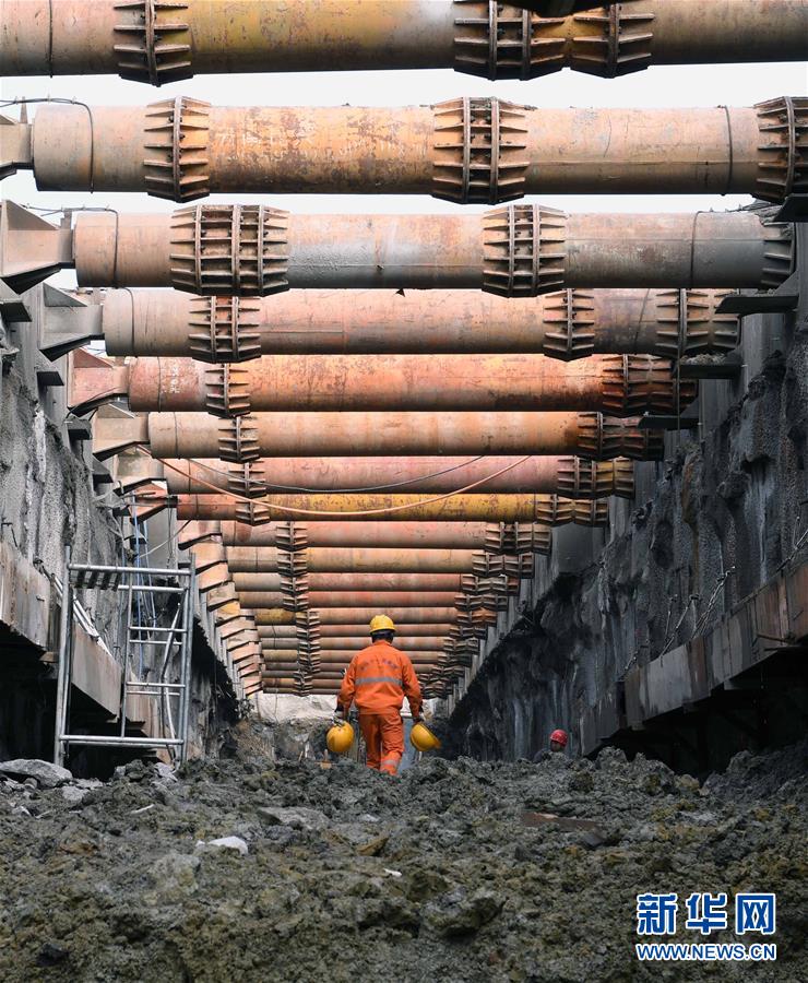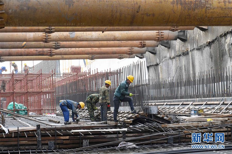 12月30日,南昌地鐵四號線西禮區(qū)間項目工地上,中鐵上海工程局集團有限公司的職工在進行施工。新華社記者宋振平攝