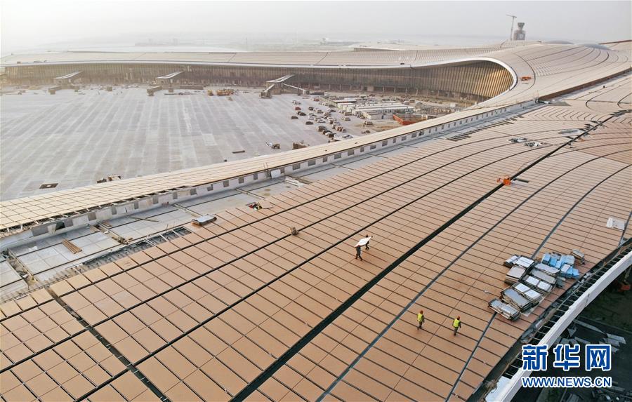 2019年1月1日,工人在北京大興國際機場工地冒著嚴(yán)寒施工(無人機拍攝)。 當(dāng)日是新年第一天,眾多勞動者忙碌在工作崗位上。 新華社記者 才揚 攝