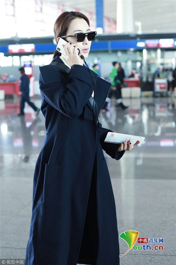 2019年1月7日,北京,馬蘇現(xiàn)身機(jī)場。她身穿黑色到腳大衣霸氣外露,架黑超涂紅唇似帥氣“女特工”。