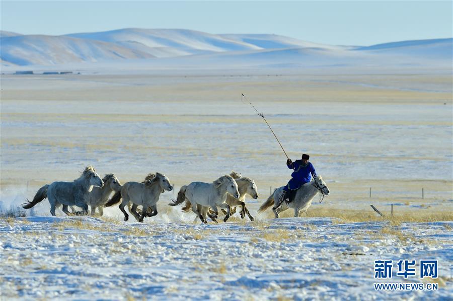 1月8日,牧民進行套馬表演。 時下正值草原冬季旅游旺季,內蒙古自治區(qū)西烏珠穆沁旗的牧民們在雪原上一展身手,為游客展現(xiàn)獨特的民族風情。 新華社記者 鄒予 攝