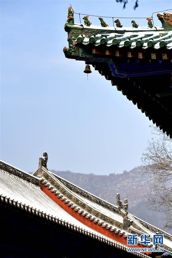 1月10日無人機拍攝的少林寺一景。當日,雪后初霽,河南登封少林寺分外秀美。 新華社記者 馮大鵬 攝
