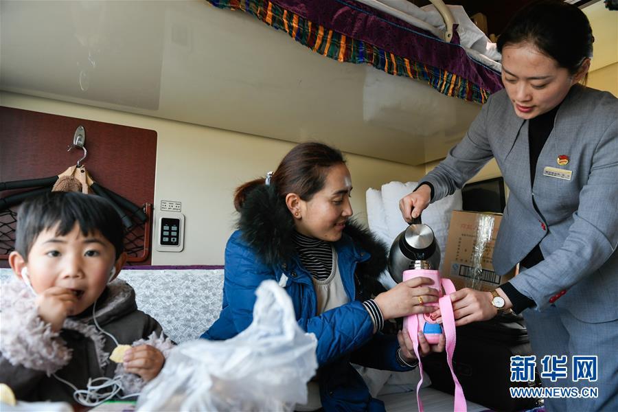 春運臨近,西藏鐵路客流逐漸增大。從拉薩發(fā)往西寧的中國鐵路青藏集團公司西寧客運段Z6802次旅客列車滿載著游客、務(wù)工人員、學生、朝佛信眾等,穿梭在白雪皚皚的高原上。