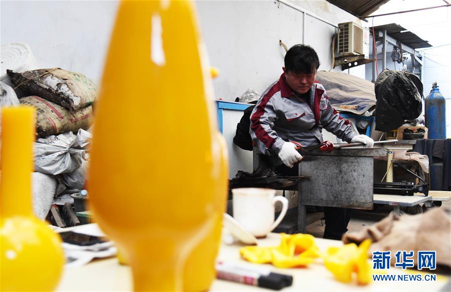 1月12日,孫云毅在制作雞油黃琉璃藝術品。 新華社記者王凱攝