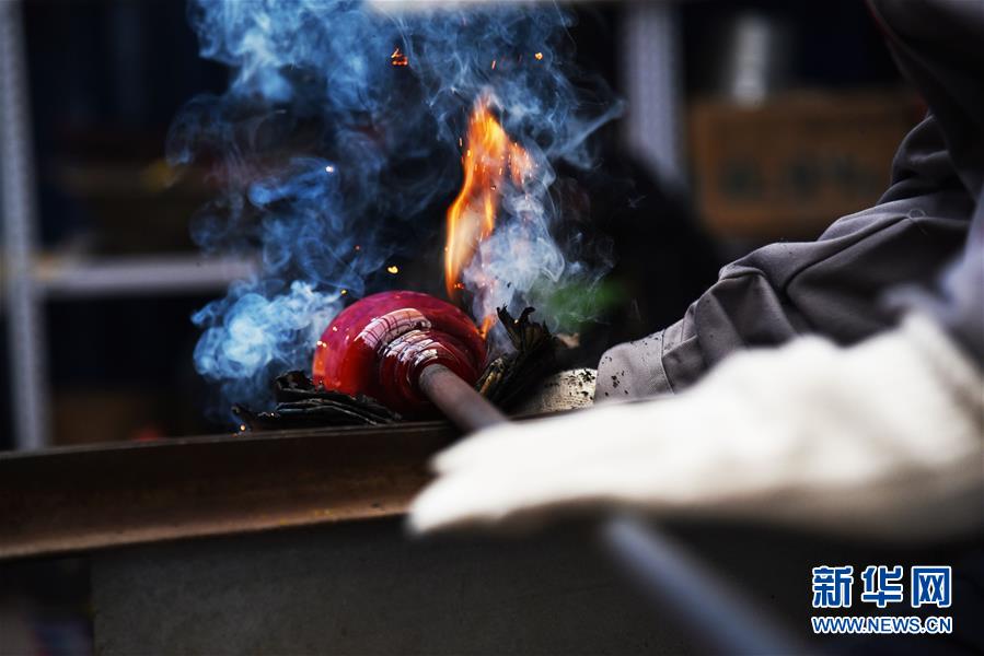 1月12日,孫云毅在制作雞油黃琉璃藝術品。 新華社記者王凱攝
