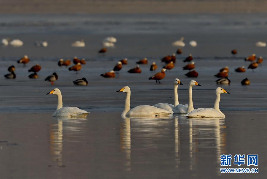 1月13日,天鵝等水鳥在張家口市宣化區(qū)洋河水庫(kù)休憩。 近年來,河北省張家口市宣化區(qū)立足京津冀生態(tài)涵養(yǎng)區(qū)的功能定位,不斷加大環(huán)境治理和生態(tài)功能修復(fù)力度,使洋河水庫(kù)及周邊濕地成為天鵝、大雁、野鴨、灰鶴等多種鳥類南北遷徙中的棲息地。 新華社記者楊世堯攝