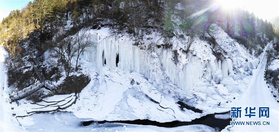 1月9日在云臺山景區(qū)拍攝的冰瀑景觀。 近日,受降溫影響,位于河南省焦作市的云臺山景區(qū)出現(xiàn)冰瀑景觀,奇特壯美。 新華社記者 李嘉南 攝