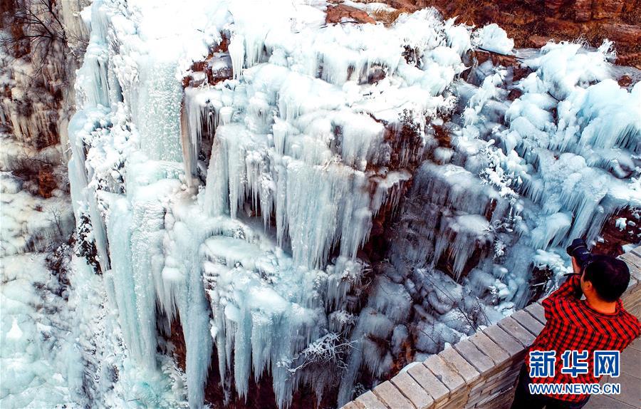 1月9日,游客在云臺山景區(qū)拍攝冰瀑景觀。 近日,受降溫影響,位于河南省焦作市的云臺山景區(qū)出現(xiàn)冰瀑景觀,奇特壯美。 新華社記者 馮大鵬 攝