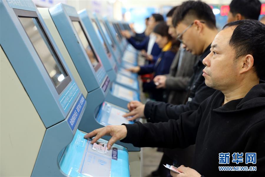 1月15日,旅客在廣州火車站售票大廳內(nèi)的自助售票終端上購票。 為適應互聯(lián)網(wǎng)購票旅客比重持續(xù)上升趨勢,廣州火車站在籌備2019年春運票務業(yè)務時,優(yōu)化互聯(lián)網(wǎng)購票取票和退改簽業(yè)務辦理流程設計,提升效率,方便旅客出行。 新華社記者劉大偉攝
