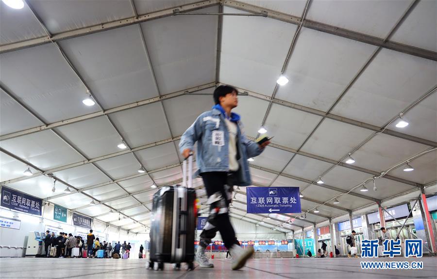 1月15日,一名旅客在廣州火車站售票大廳外臨時搭建的互聯(lián)網(wǎng)購票取票大棚內(nèi)取票。 為適應互聯(lián)網(wǎng)購票旅客比重持續(xù)上升趨勢,廣州火車站在籌備2019年春運票務業(yè)務時,優(yōu)化互聯(lián)網(wǎng)購票取票和退改簽業(yè)務辦理流程設計,提升效率,方便旅客出行。 新華社記者劉大偉攝