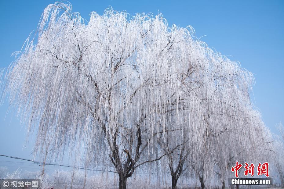 1月13日,107國道河北省定州路段出現(xiàn)霧?。鋻欤┚坝^,吸引路人駐足拍照留念。王保生 攝 圖片來源:視覺中國