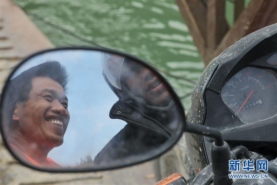1月22日,賴福昌(左)與乘坐渡輪回家的當(dāng)?shù)卮迕窠徽劇?新華社記者 歐東衢 攝