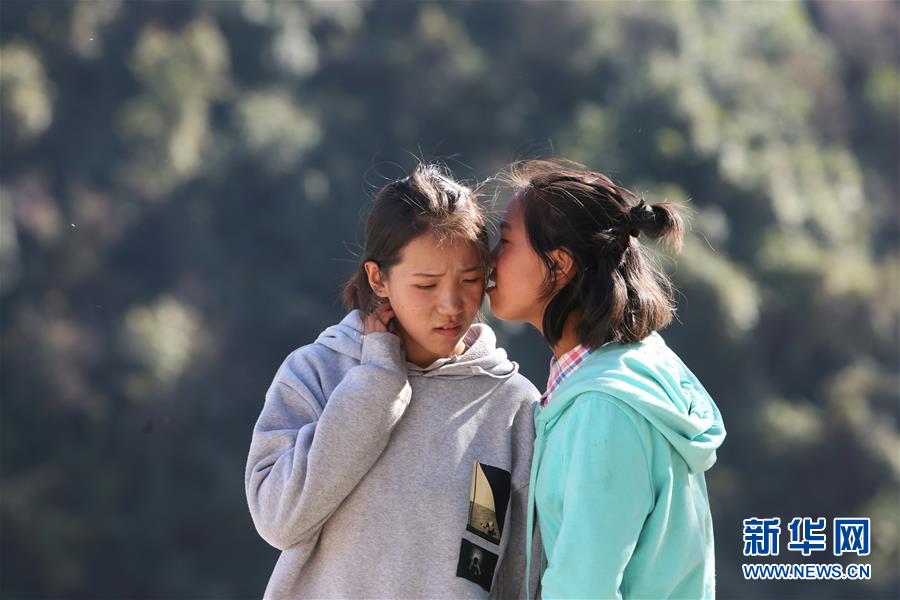 1月24日,在云南省蘭坪縣,褚福妹(左)與妹妹褚福子說(shuō)悄悄話。