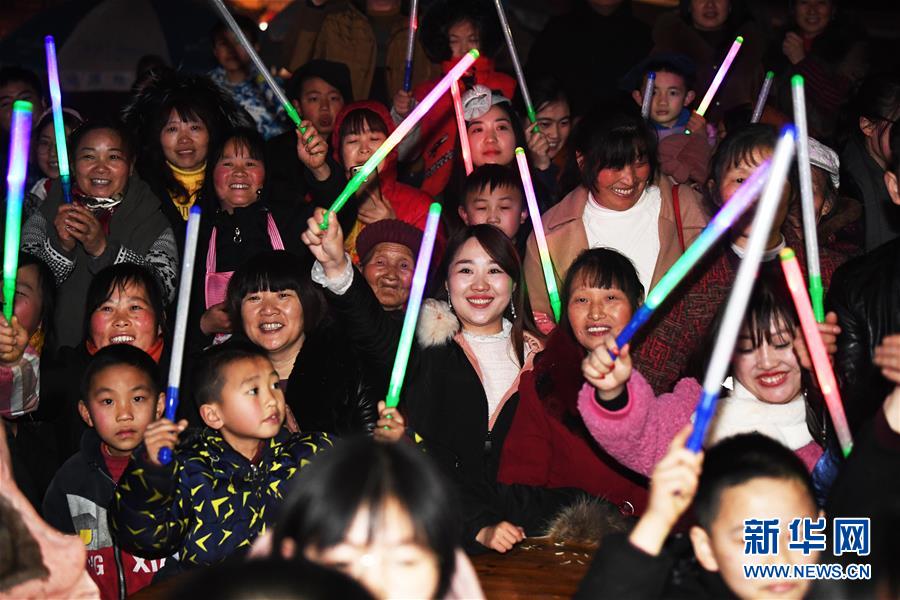 1月31日,觀(guān)眾在觀(guān)賞隆興村七社“農(nóng)家春晚”。新華社記者 王全超 攝
