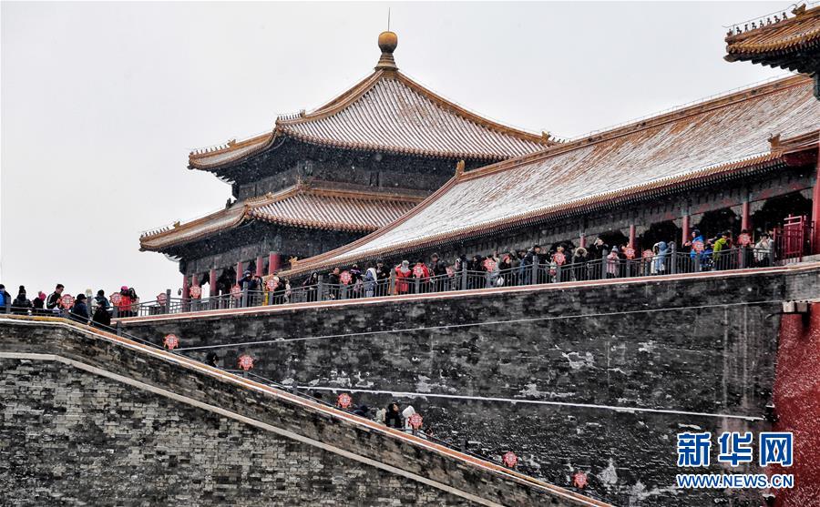 2月14日,游客在雪中游覽北京故宮。 當日,北京降雪,大批游人來到故宮游覽賞雪。 新華社記者 李欣 攝