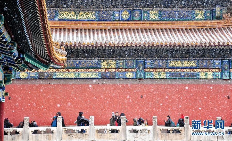 2月14日,游客在雪中游覽北京故宮。 當(dāng)日,北京降雪,大批游人來到故宮游覽賞雪。 新華社記者 李欣 攝