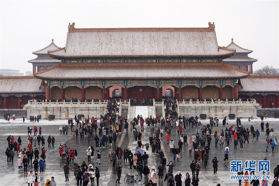 2月14日,游客在雪中游覽北京故宮。 當(dāng)日,北京降雪,大批游人來到故宮游覽賞雪。 新華社記者 鞠煥宗 攝