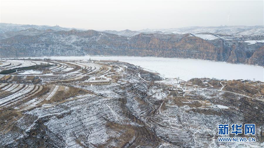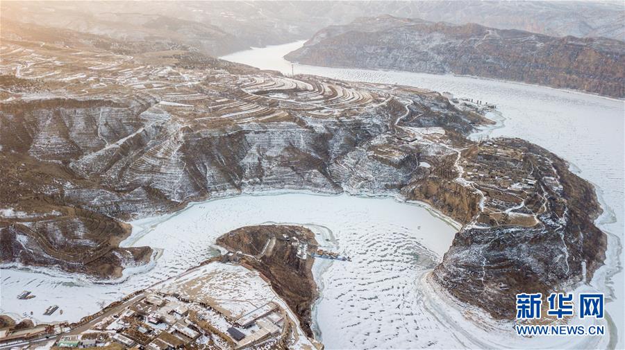 這是2月17日無人機拍攝的老牛灣雪景。黃河老牛灣位于山西省和內蒙古自治區(qū)交界處。