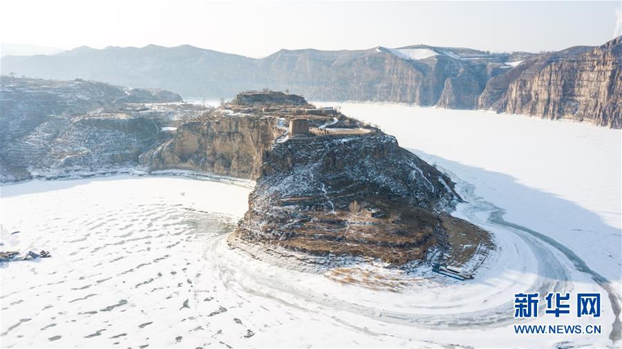 這是2月17日無人機拍攝的老牛灣雪景。 黃河老牛灣位于山西省和內蒙古自治區(qū)交界處。新華社記者 彭源 攝