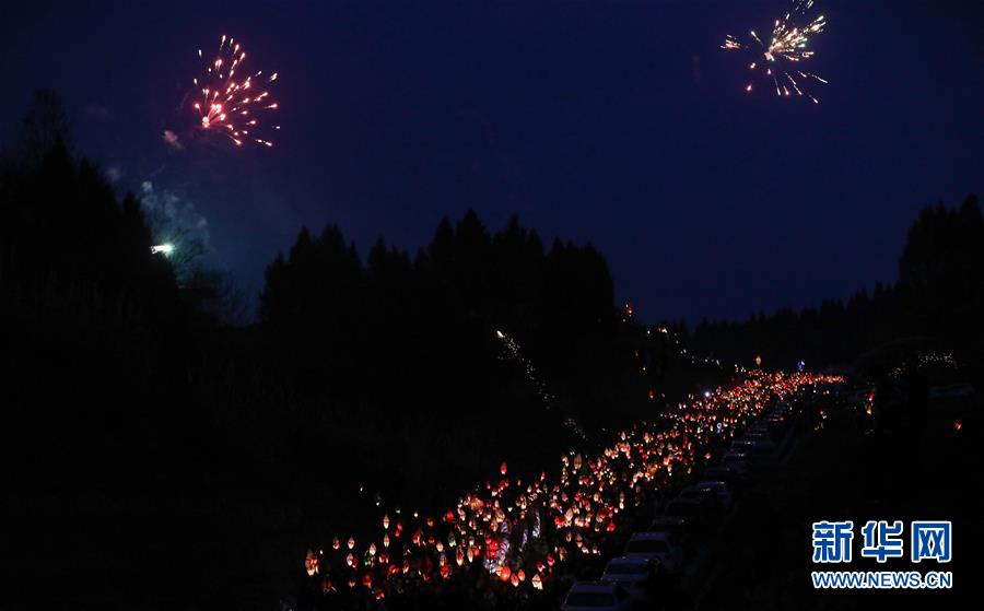 2月18日,群眾在四川省南充市嘉陵區(qū)金寶鎮(zhèn)點(diǎn)亮“蠐蟆燈”。 當(dāng)日是農(nóng)歷正月十四,夜幕降臨后,川渝等地數(shù)萬名群眾在四川省南充市嘉陵區(qū)金寶鎮(zhèn)匯聚,點(diǎn)亮“蠐蟆燈”,敲著鑼鼓唱著歌謠,將“蠐蟆”送到幾公里外的田邊或者河邊燒掉,祈福健康平安。星星點(diǎn)點(diǎn)的燈光在鄉(xiāng)間小路閃爍移動,場面壯觀熱烈。 “送蠐蟆”祈福這一習(xí)俗源于清朝,歷經(jīng)演變成為川東北地區(qū)一個古老而神秘的地方民俗節(jié)日。 新華社記者 江宏景 攝