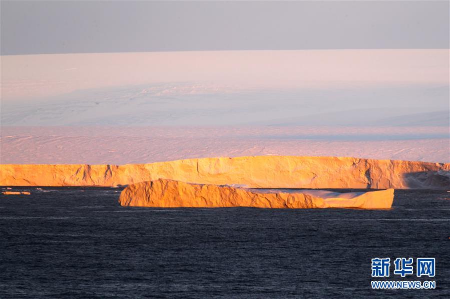 這是中山站附近的南極冰蓋邊緣及斷落入海的冰山(2月13日攝)。新華社記者 劉詩(shī)平 攝