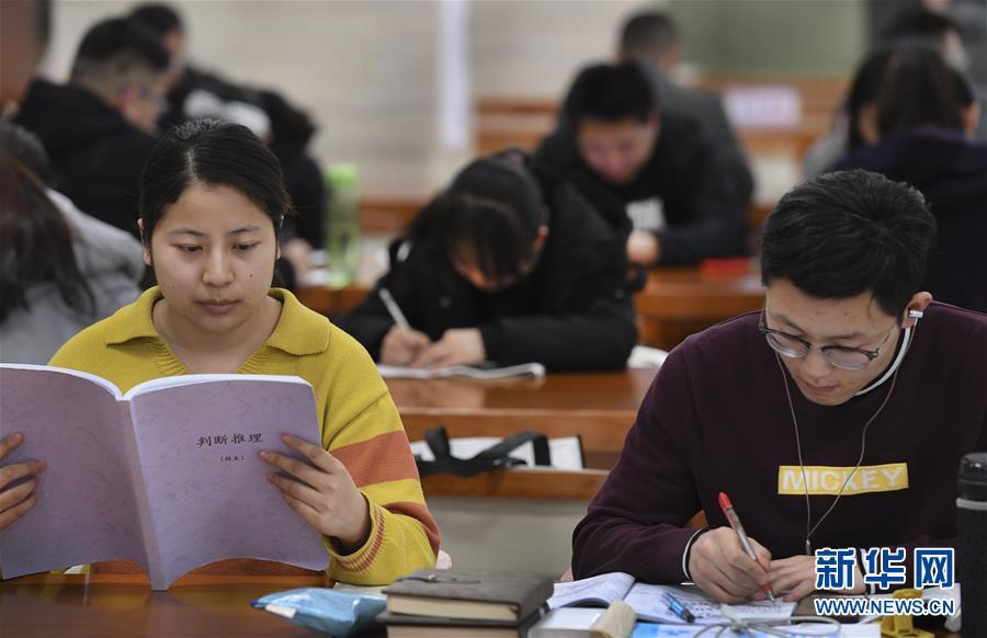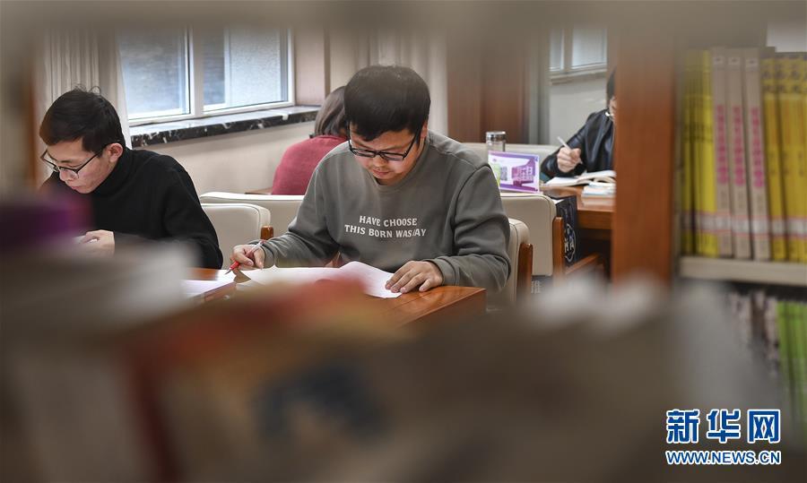 2月24日,府谷縣圖書館三樓自習(xí)區(qū)座無虛席。 新華社記者 陶明 攝