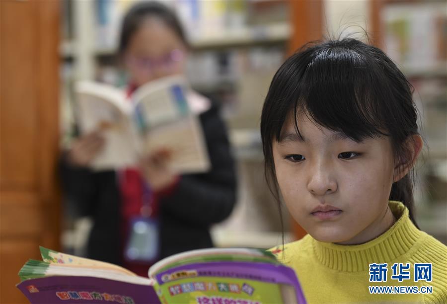 2月24日,中學(xué)生李婭旋(右)在府谷縣圖書館閱讀。 新華社記者 陶明 攝