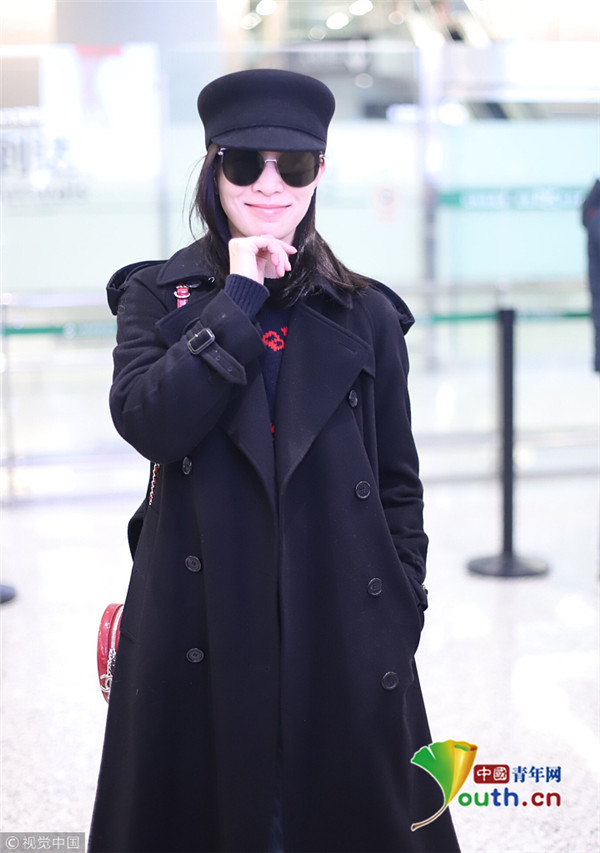 2019年2月28日,上海,佘詩曼現(xiàn)身機(jī)場。她頭戴禮帽,身穿黑色大衣走路帶風(fēng)氣場強(qiáng),單手托腮甜笑瞬間暖人心。