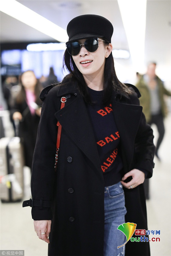 2019年2月28日,上海,佘詩曼現(xiàn)身機(jī)場(chǎng)。她頭戴禮帽,身穿黑色大衣走路帶風(fēng)氣場(chǎng)強(qiáng),單手托腮甜笑瞬間暖人心。