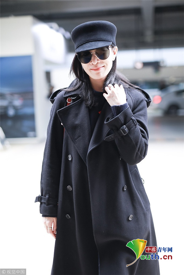 2019年2月28日,上海,佘詩曼現(xiàn)身機場。她頭戴禮帽,身穿黑色大衣走路帶風(fēng)氣場強,單手托腮甜笑瞬間暖人心。