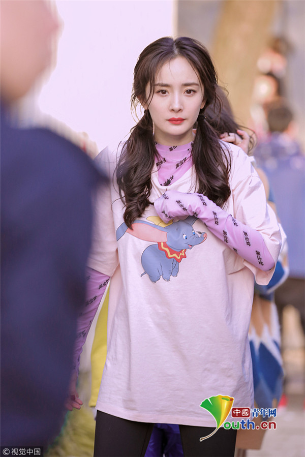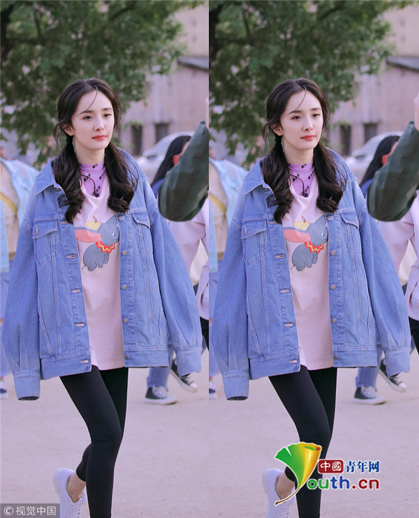 2019年3月12日,湖南長沙,楊冪錄制某綜藝節(jié)目路透曝光。她扎著雙馬尾甜美可愛似少女,穿oversized的牛仔外套和寬大T恤,戴著防曬的護(hù)袖,身材十分纖細(xì)苗條。錄制期間,楊冪氣質(zhì)明艷靈動活潑,元?dú)鉂M滿青春感爆棚。