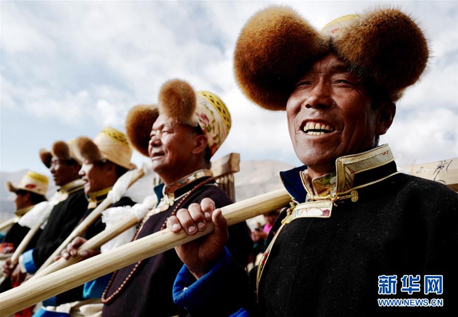3月16日,山南市乃東區(qū)克松社區(qū)居民在開(kāi)耕儀式上。 當(dāng)日,西藏各地男女老幼身著節(jié)日盛裝,駕著一輛輛由彩旗、花朵裝扮一新的拖拉機(jī),涌向待墾的農(nóng)田,載歌載舞迎來(lái)一年一度的開(kāi)耕儀式。 新華社記者 普布扎西 攝