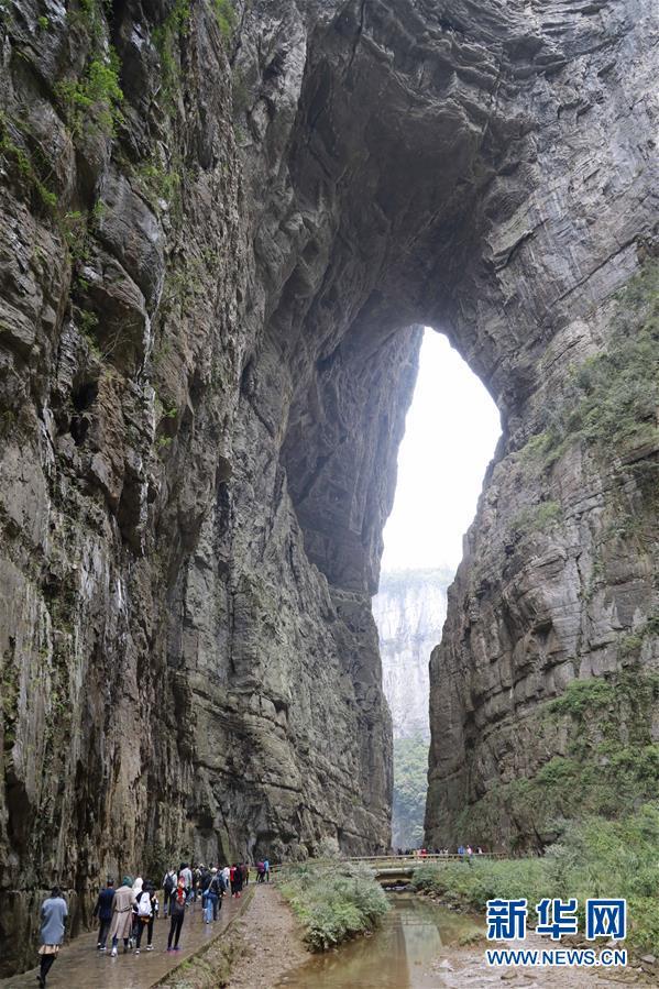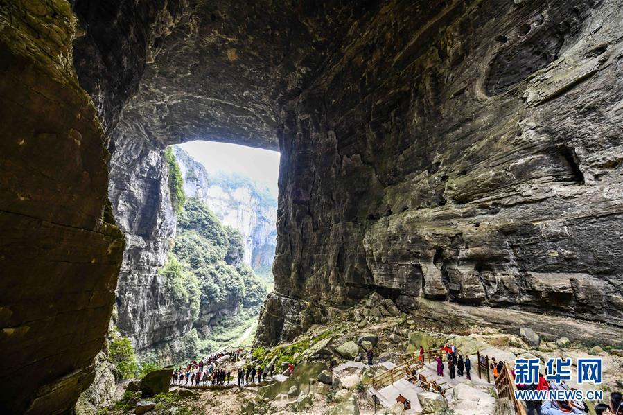游客在天生三橋景區(qū)游覽(3月27日攝)。 隨著天氣轉(zhuǎn)暖,重慶武隆天生三橋景區(qū)風(fēng)景如畫,氣勢(shì)磅礴的天生石橋和綠意盎然的山林相映成趣,吸引眾多游客前來踏春賞景。 新華社記者劉潺攝