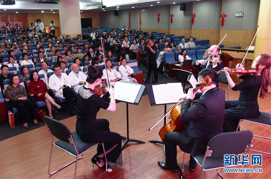 4月25日,上海交響樂(lè)團(tuán)的藝術(shù)家在復(fù)旦大學(xué)附屬腫瘤醫(yī)院為患者和醫(yī)護(hù)人員演奏。 當(dāng)日,第一場(chǎng)“全城交響·上交為你而來(lái)”音樂(lè)會(huì)在復(fù)旦大學(xué)附屬腫瘤醫(yī)院報(bào)告廳奏響,為患者及醫(yī)護(hù)人員獻(xiàn)上一場(chǎng)專(zhuān)屬音樂(lè)會(huì)?!叭墙豁憽ど辖粸槟愣鴣?lái)”是上海交響樂(lè)團(tuán)2019年向全上海的機(jī)構(gòu)及個(gè)人開(kāi)放的公益演出項(xiàng)目。 新華社記者 任瓏 攝