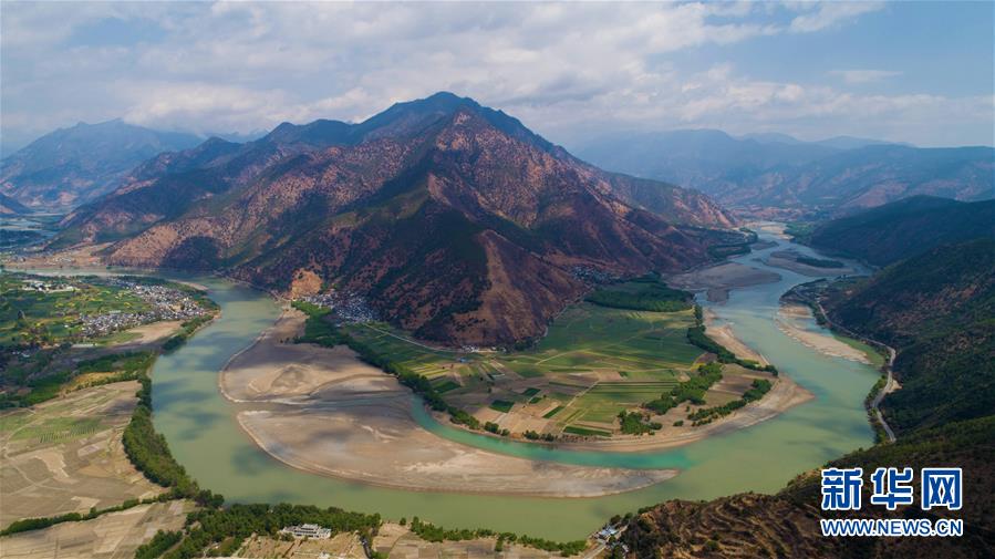 這是無人機(jī)拍攝的“長江第一灣”(3月17日攝)?!伴L江第一灣”位于云南省麗江市玉龍納西族自治縣石鼓鎮(zhèn),萬里長江從青藏高原奔騰而下,與瀾滄江、怒江一起在橫斷山脈的高山深谷中穿行形成并流的壯麗景觀。金沙江在麗江石鼓鎮(zhèn)突然以急轉(zhuǎn)彎轉(zhuǎn)向東北,形成一個(gè)宛若“V”字形的大轉(zhuǎn)彎,得名“長江第一灣”。春日里,“長江第一灣”江水青碧,美景迷人。 新華社記者胡超攝