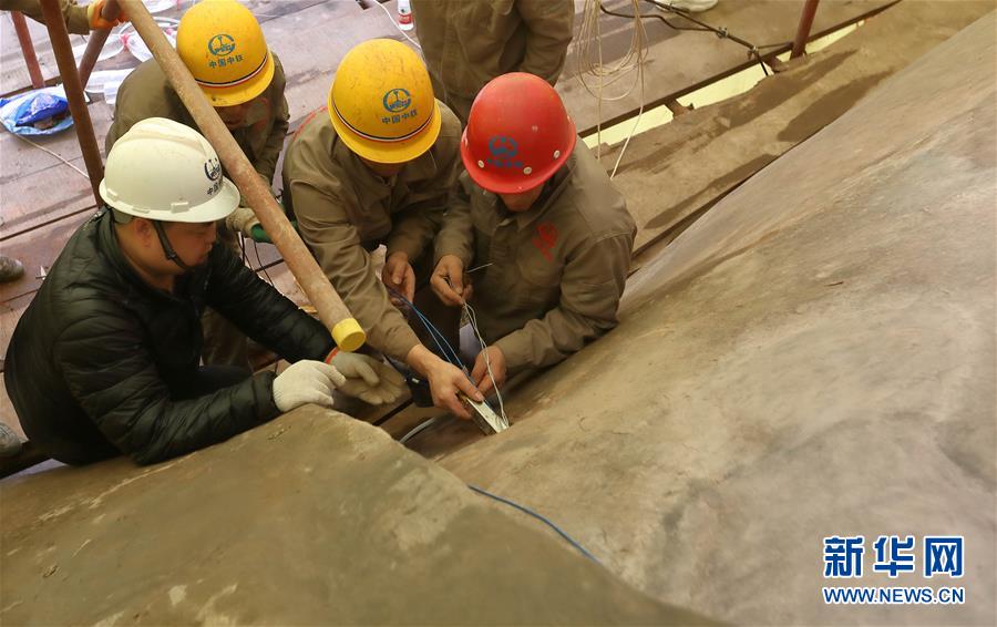 工人在搭建腳手架(10月19日攝)。圖中下方顯示,大佛腳趾有明顯的破損。 經(jīng)過(guò)17天緊張施工,10月25日下午,正在“體檢”的樂(lè)山大佛腹部以下的腳手架搭設(shè)完畢,這表明大佛“體檢”已觸達(dá)胸腹部及頭部等核心區(qū)域。 新華社記者張超群攝