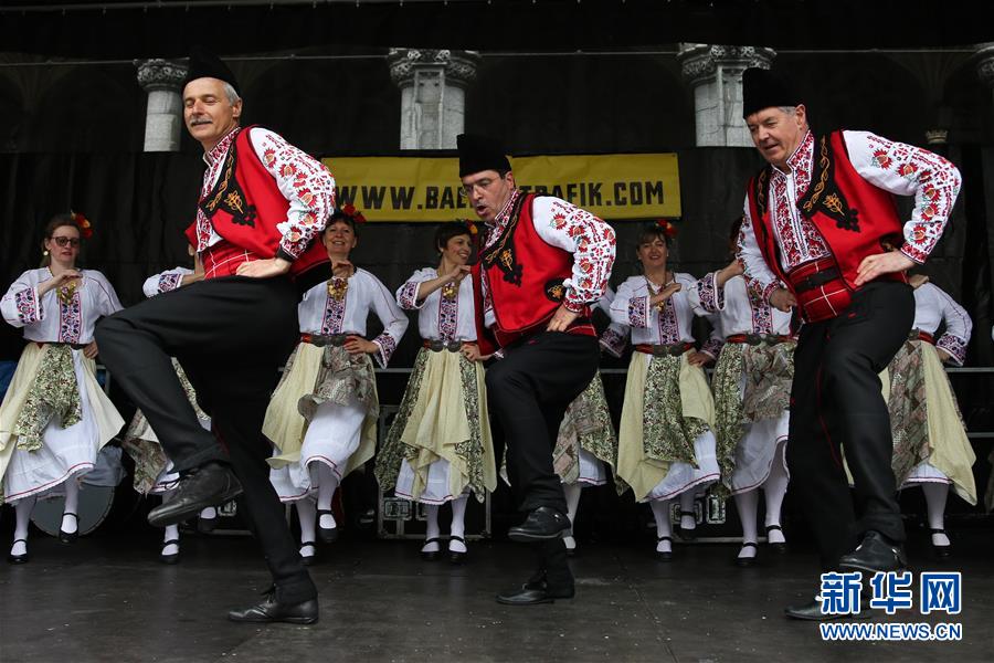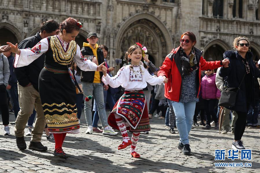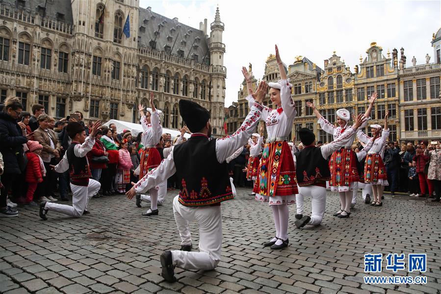 4月28日,在比利時布魯塞爾大廣場,演員表演保加利亞的民族舞蹈。 當(dāng)日,來自歐洲多個國家的表演者在比利時布魯塞爾大廣場載歌載舞,慶祝為期五天的2019年巴爾干文化藝術(shù)節(jié)圓滿落幕。該文化藝術(shù)節(jié)旨在用音樂、舞蹈、文學(xué)、街頭藝術(shù)等方式向公眾展現(xiàn)東南歐巴爾干半島地區(qū)的民族文化風(fēng)情。 新華社記者鄭煥松攝