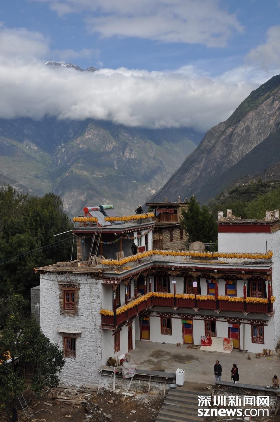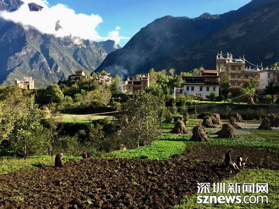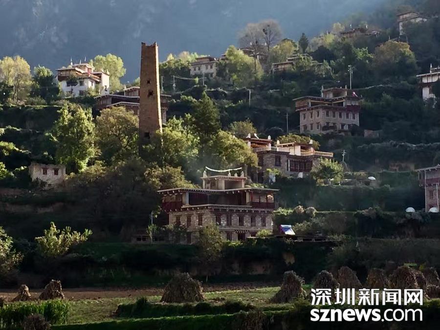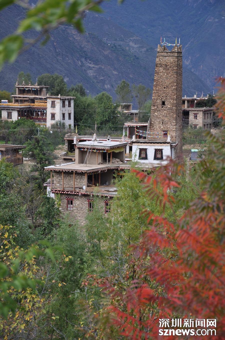 丹巴西距成都348公里,是從事農(nóng)業(yè)生產(chǎn)的嘉絨藏族聚居的地方。當(dāng)?shù)厝司幼〉恼右话阈藿ㄔ谙蜿柕钠铝荷?,由幾十戶甚至上百戶人家組成。一幢幢外形美觀,風(fēng)格統(tǒng)一的寨房和碉樓依著起伏的山勢(shì)而建,構(gòu)成一幅幅優(yōu)美的畫卷。李仁奇攝