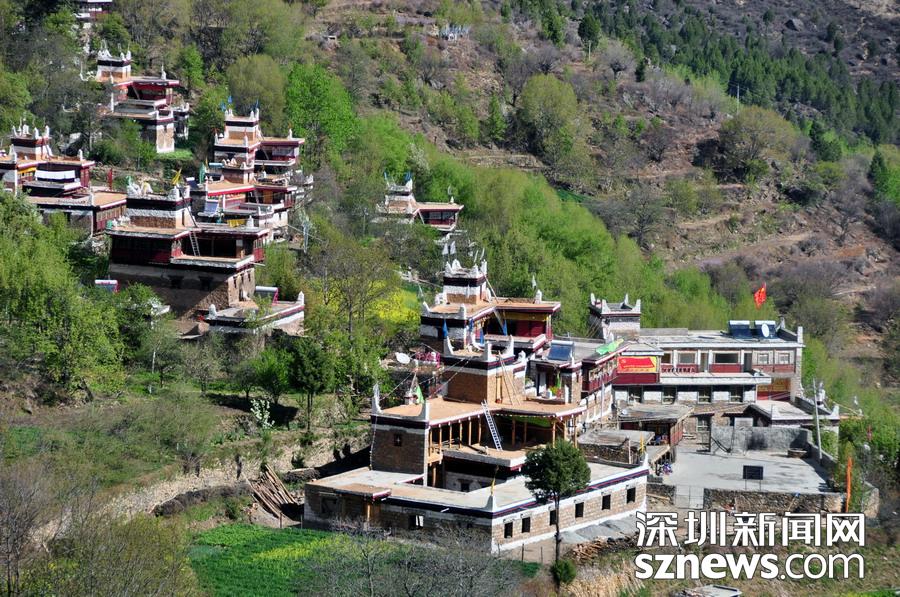 “甲居”,藏語是百戶人家之意。甲居藏寨距丹巴縣城約8公里,從大金川河谷層層向上攀緣,一直伸延到卡帕瑪群峰腳下。在相對(duì)高差近千米的山坡上,一幢幢藏式樓房和碉樓灑落在綠樹鮮花叢中,將田園牧歌式的風(fēng)光展示在人們眼前。李仁奇攝
