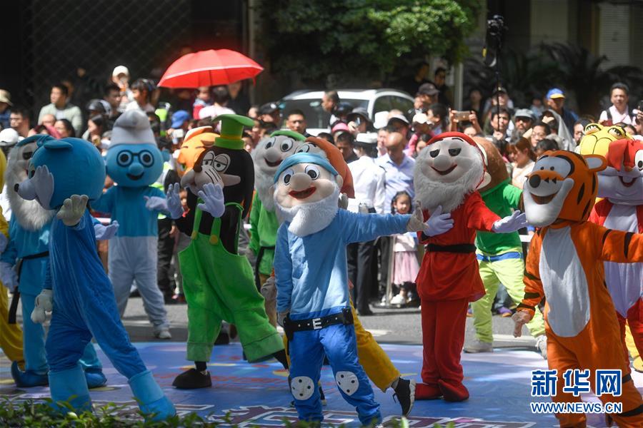 5月4日,演員裝扮成各種動(dòng)漫形象在巡游隊(duì)伍中表演。當(dāng)日,第十五屆中國(guó)國(guó)際動(dòng)漫節(jié)彩車巡游活動(dòng)在浙江杭州南宋御街中北創(chuàng)意街區(qū)舉行。巡游表演隊(duì)伍約500米長(zhǎng),由4輛大型動(dòng)漫彩車、1輛小火車及400多名演員組成。新華社記者 黃宗治 攝