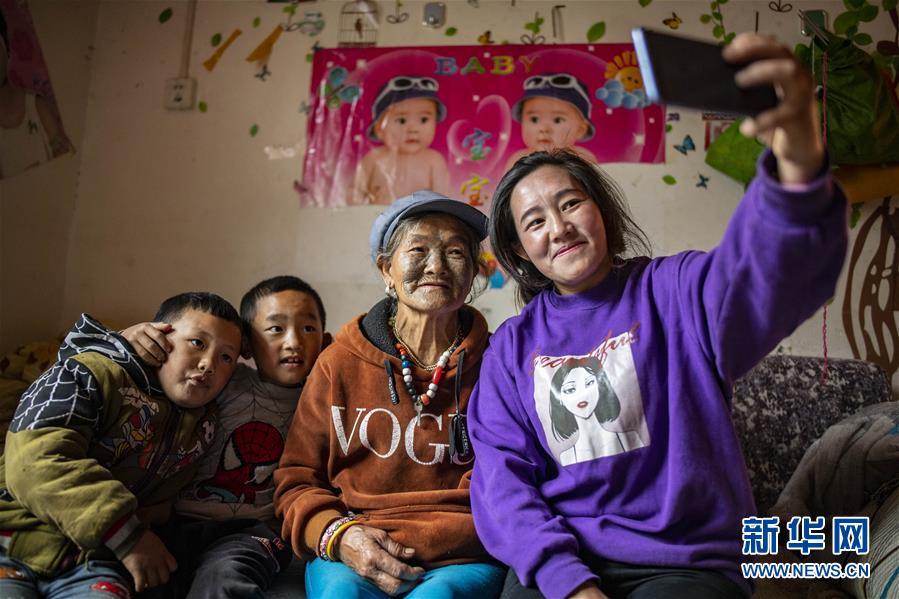 75歲的“文面女”李文仕(右二)在與孩子們自拍(4月21日攝)。 70年,在人類歷史長河中不過彈指一瞬。但對獨龍族同胞來說,新中國的70年,他們仿佛進入了時空穿梭隧道,滄桑巨變,千古未有。 他們告別苦難,迎來陽光。他們告別封閉,走向開放。他們告別原始落后,擁抱現代文明。最近,他們宣告整族脫貧,實現“千年一躍”。 新華社記者 江文耀 攝