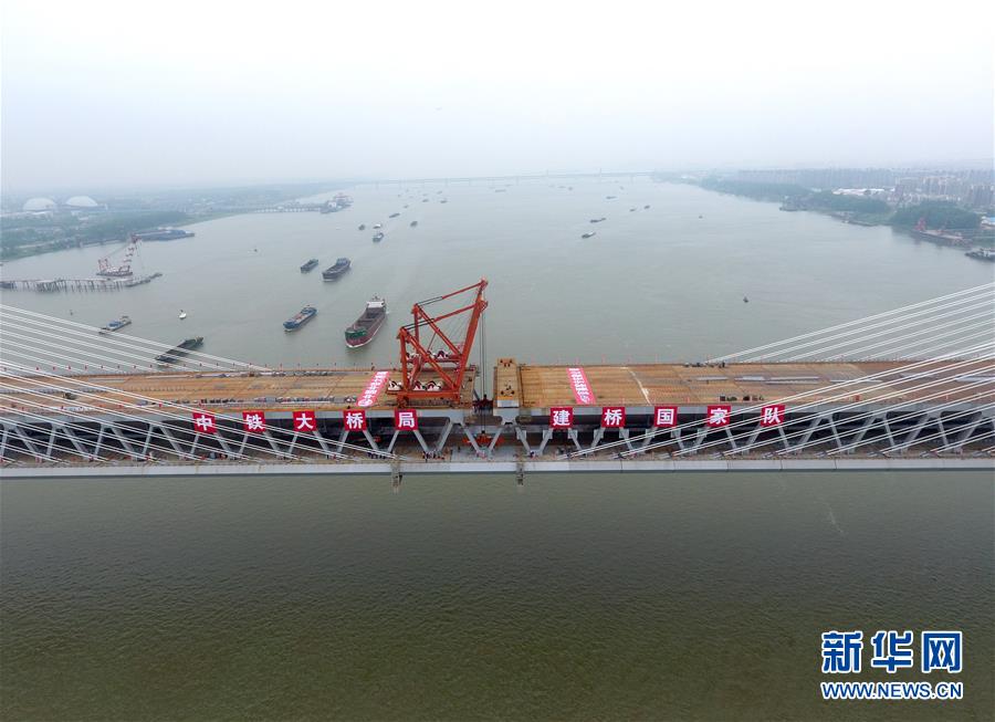 這是合龍后的商合杭鐵路蕪湖長(zhǎng)江公鐵大橋(4月26日無(wú)人機(jī)拍攝)。