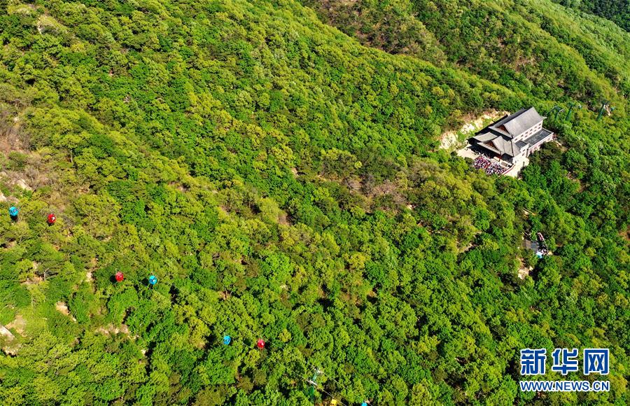 這是5月2日拍攝的盤山風景名勝區(qū)正門景觀(無人機拍攝)。新華社記者 岳月偉 攝